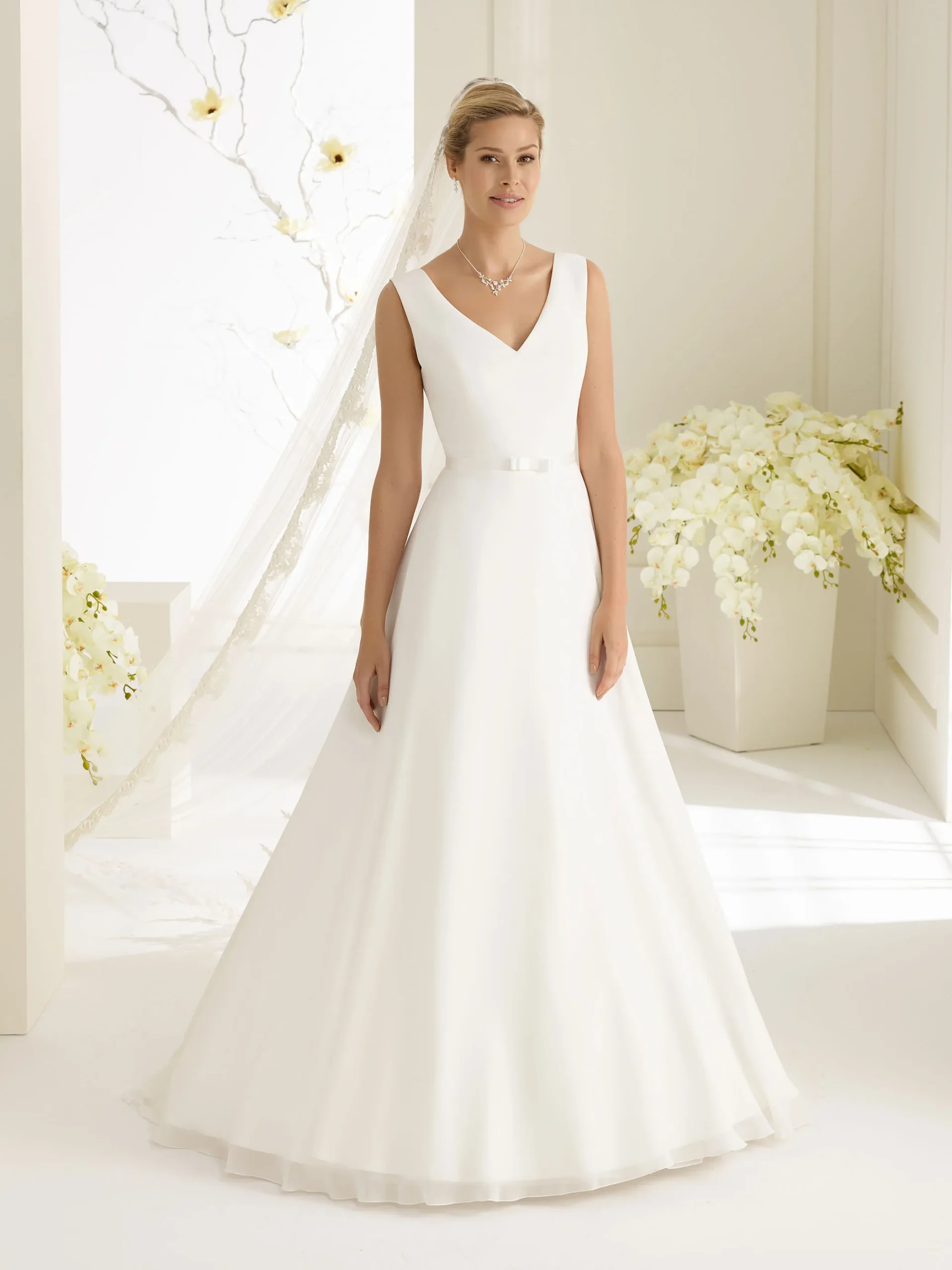DALILA est une robe de mariée trapèze en mousseline à col en V.