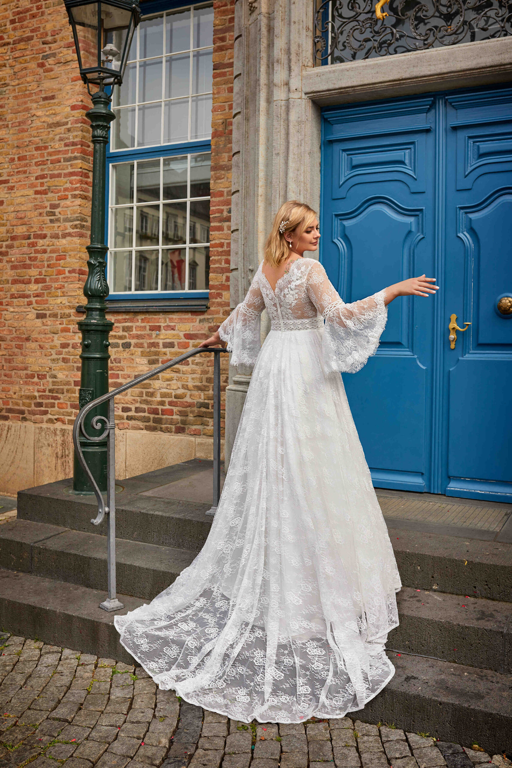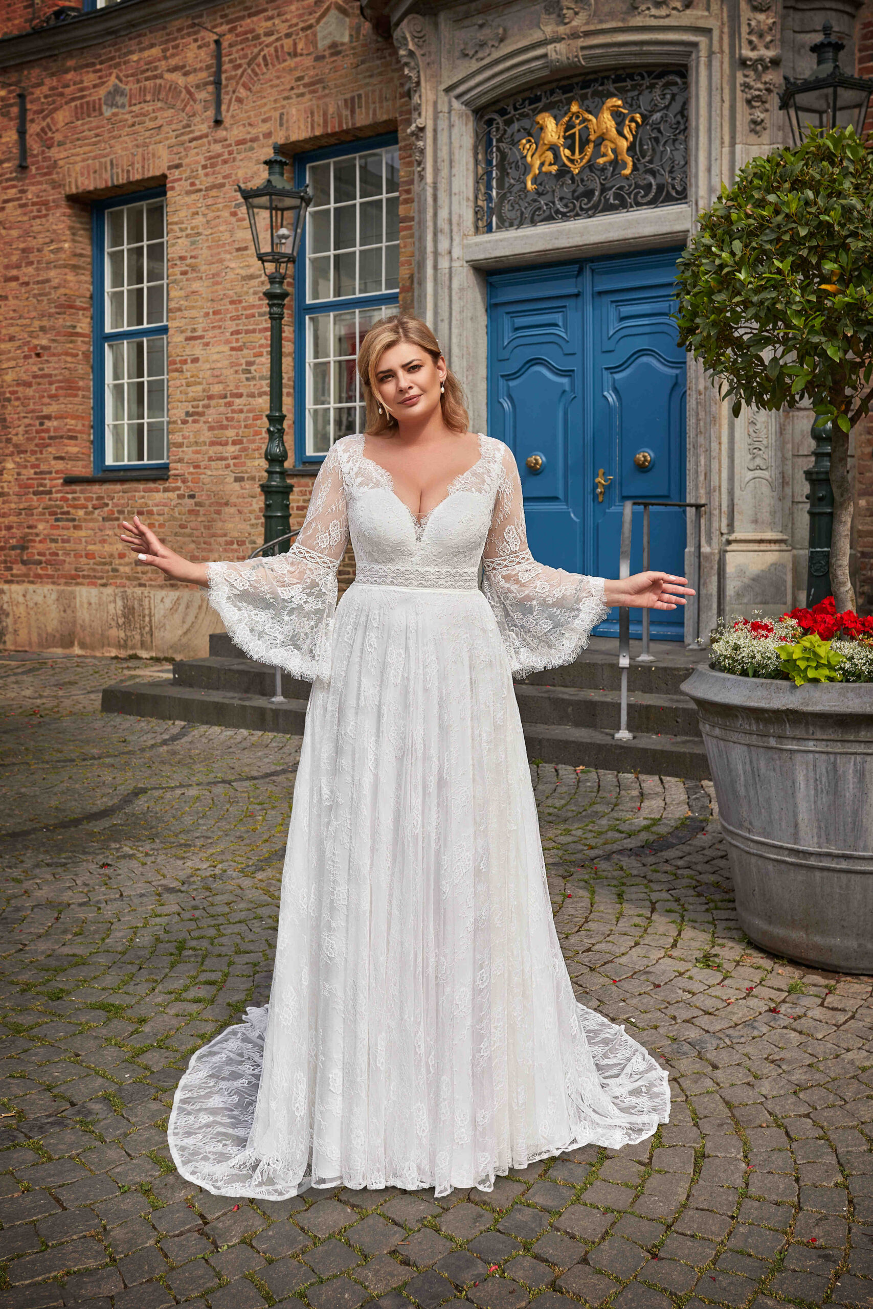 Robe de mariée en dentelle, manche longue